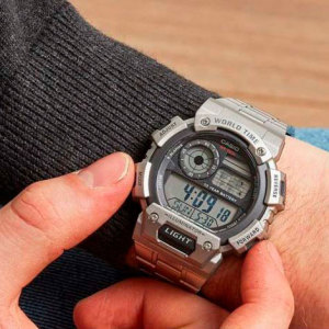 Функции: Цифровой способ отображения времени. Мировое время – 48 городов (31 часовой пояс), всемирное координированное время (UTC). Автоматический переход на зимнее и летнее время, возможность включения/отключения данной функции. Одновременное отображение текущего времени в четырех городах. На отдельном дисплее изображена карта мира с часовыми поясами. 12-ти и 24-х часовой формат. Секундомер с точностью показаний 1/100с и временем измерения 24ч. Сплит-хронограф. 5 будильников, ежечасный сигнал. Автоматический календарь (до 2099 года). 12/24х часовой формат времени. Функция включения/отключения звука кнопок.