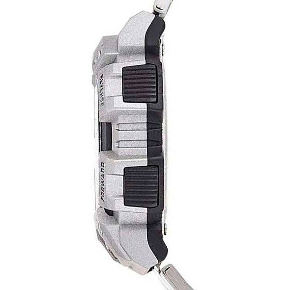 Корпус: Корпус выполнен из полимерного материала серебристого цвета. Циферблат серого цвета вокруг дисплея. Дисплей серого цвета, цифры чёрного. Акриловое стекло. Автоматическая светодиодная подсветка. Задняя крышка из нержавеющей стали с креплением к корпусу на винтах. Габаритные размеры: 48,4х51,4мм, толщина 14,4мм, вес 106г. Водозащита: 100 м.