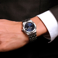 Корпус: Круглый корпус выполнен из нержавеющей стали, поверхности с матовой шлифовкой сатинированием и глянцевой полировкой. Циферблат синего цвета ночного неба с шлифовкой в стиле "солнечные лучи". Аппликация часовых индексов и стрелки с алмазной огранкой имеют родиевое покрытие и полировку до зеркального блеска. Фотолюминесцентный состав SLN на стрелках, светящийся в темноте. Сапфировое стекло с антибликовым покрытием. Диаметр корпуса составляет 40 мм. Водостойкость 10 ATM.