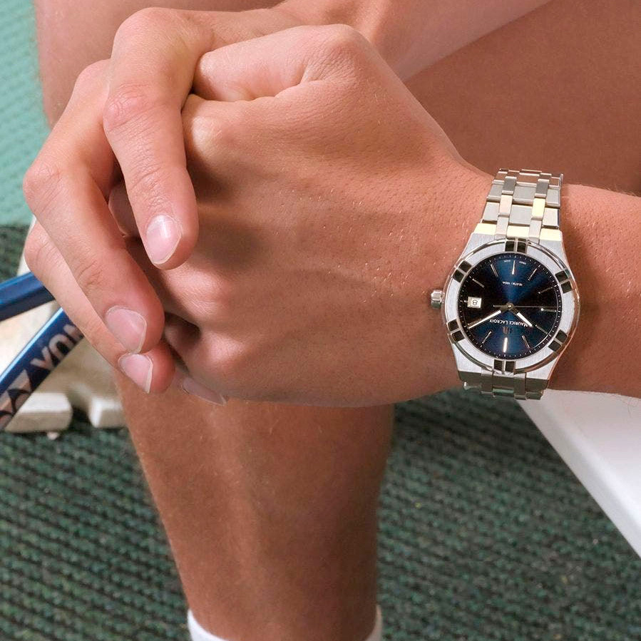 Ремешок: Браслет из нержавеющей стали с литыми звеньями в пять рядов, система быстрой замены ремешка/браслета, браслетная застежка с тройным сложением – «бабочка», раскладывающаяся при нажатии кнопок двойной блокировки, гравировка Maurice Lacroix.