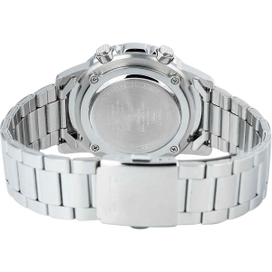 Корпус: Корпус часов выполнен из нержавеющей стали. Цвет циферблата: зелёный. Необритовое светонакопительное покрытие, нанесенное на стрелки, обеспечивает длительное послесвечение в темноте даже после кратковременного нахождения на свету. Прочное, устойчивое к царапинам минеральное стекло защищает часы от повреждений. Светодиодная подсветка. Габаритные размеры: 47х51,5мм, толщина 12 мм, вес 154г. Водозащита: 50WR.