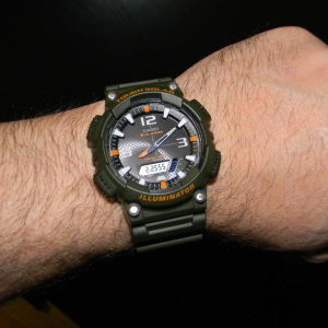 Корпус: Корпус часов сделан из полимерного пластика. Пластиковое стекло выпуклое, что обеспечивает высокий уровень прочности и устойчивости к давлению. Размер: 52,2 мм x 46,6 мм x 13 мм. Водозащита: 100 метров. Вес 39,5 гр.