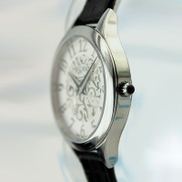 Корпус: Корпус из нержавеющей полированной/матовой стали. Металлик циферблат с серебристыми стрелками и часовыми индексами. Циферблат декорирован фирменным узором Арабеска. Сапфировое стекло. Диаметр 29 мм. Водостойкость 50 м.