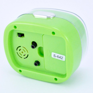 Функции: Будильник имеет два типа звонка: громкий механический звонок и музыкальный звонок. Вы можете выбрать тип звонка переключателем, который находится на задней стороне корпуса. Функция повтора сигнала (snooze) сработает примерно через 5 минут. Подсветка включается на несколько секунд кнопкой, которая находится сверху корпуса.