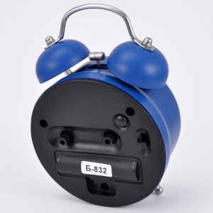 Материал и цвет: Корпус будильника изготовлен из пластика, к которому крепятся два металлических колокольчика, окрашенных в цвет корпуса. При звонке молоточек ударяет по колокольчикам. Стекло – минеральное.