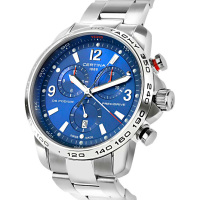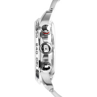 Функции: Индикация часов, минут при помощи центральных стрелок.  Хронограф. Малая секундная стрелка и окошко даты в положении " 6 часов", тахиметрическая шкала по безелю.