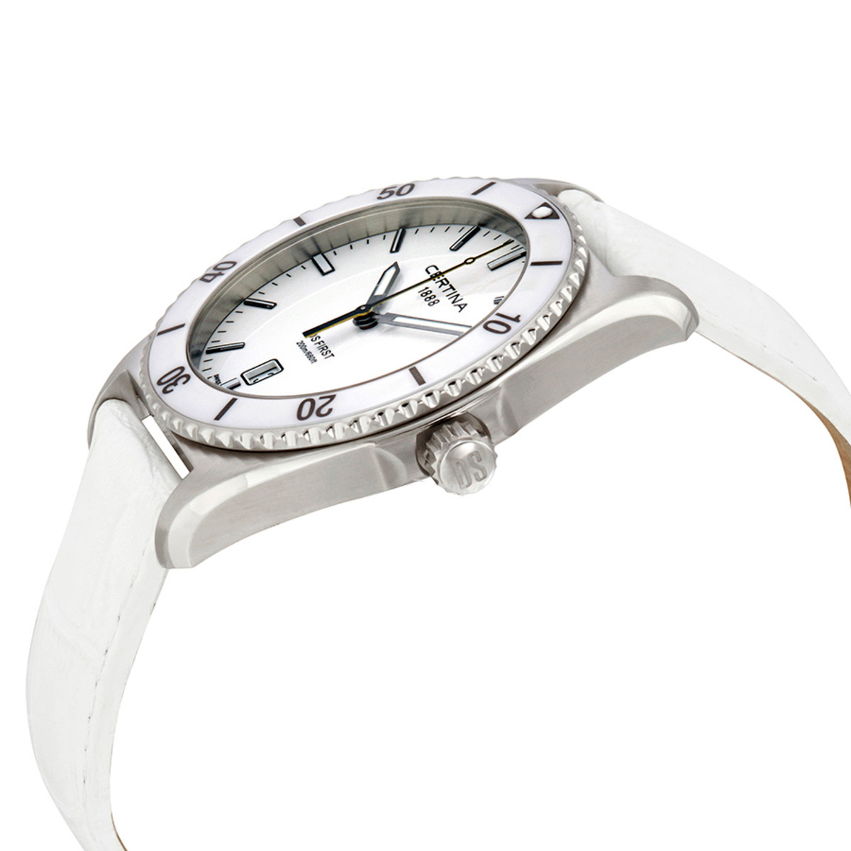 Корпус: Корпус из нержавеющей полированной/матовой стали. Безель с 60 - минутной шкалой на керамическом белом кольце. Белый циферблат. Стрелки и часовые индексы серебристого цвета. Сапфировое стекло с антибликовым покрытием. Диаметр 41 мм. Водостойкость 200 м. Система DS.