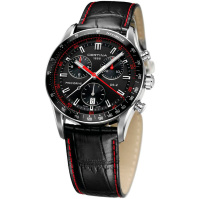 Функции: Индикация часов, минут при помощи центральных стрелок. Многофункциональный хронограф с счетчиками часов, минут, секунд и 100-х долей секунд, индикация даты и вынесенная секундная стрелка на "6 часов".