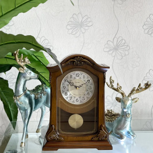 4. 3 рождественские мелодии каждый час. Автоматическое отключение на ночь с 22-00 до 6-00. Регулировка громкости звука мелодии. Настольные музыкальные часы с маятником и боем курантов, в деревянном корпусе.