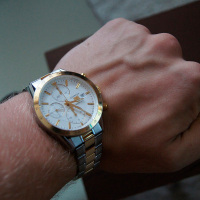 Функции: Индикация часов, минут при помощи центральных стрелок. Маленькая, отдельно вынесенная секундная стрелка. Окошко даты в положении 3 часа. Хронограф.