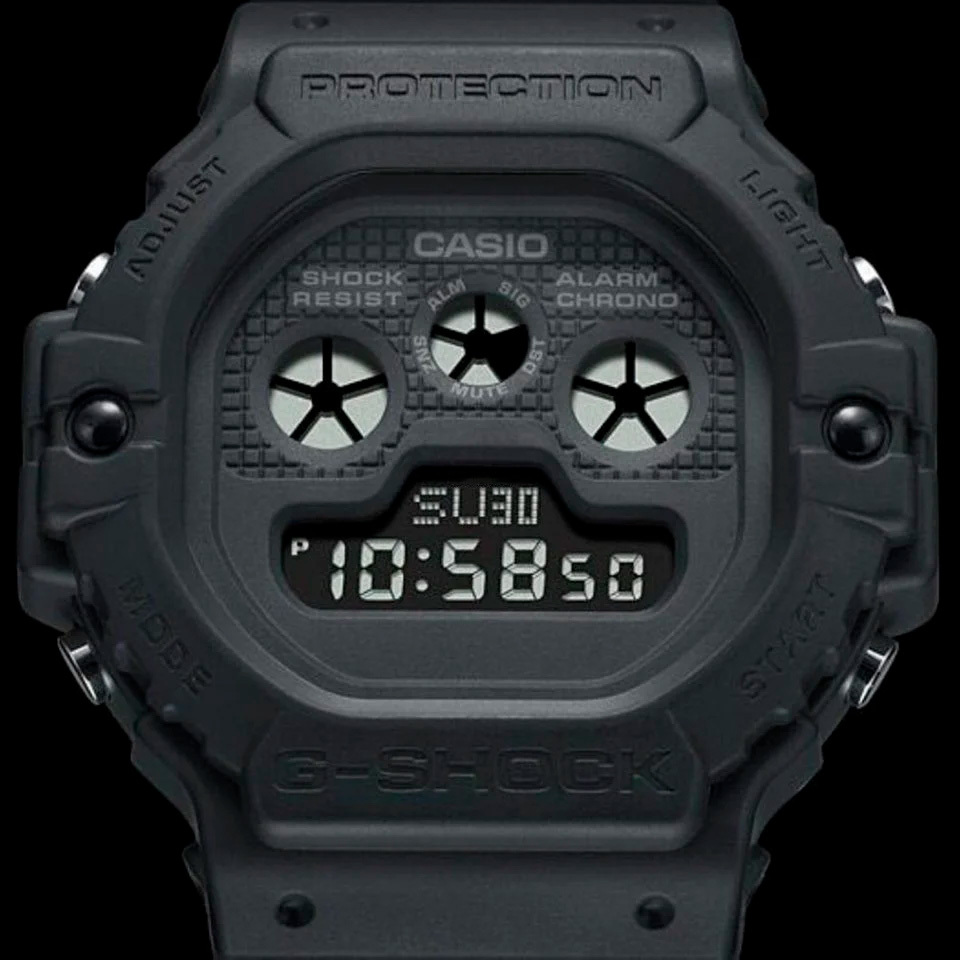 Корпус: Ударопрочный корпус выполнен из полимерного пластика монохромного черного цвета. Электролюминесцентная подсветка освещает весь циферблат, после отпускания кнопки свечение продолжается еще некоторое время. Световая индикация сигнала. Прочное минеральное стекло. Размер корпуса (Д × Ш × В) 51,4 × 46,8 × 15,5 мм. Водонепроницаемость 200 метров.