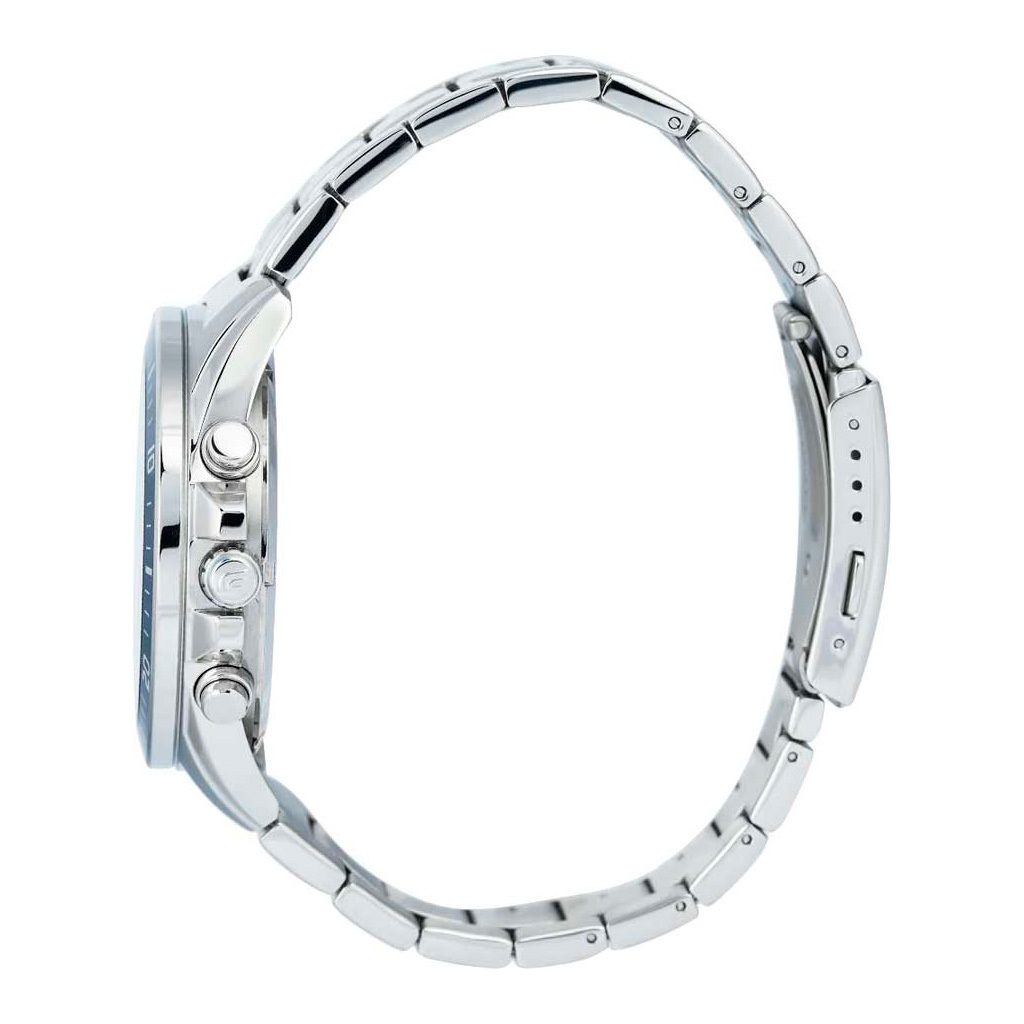 Корпус: Корпус выполнены из высококачественной стали с антикоррозийными свойствами. Безель с IP-покрытием. Циферблат синего цвета с метками в виде штрихов выполнен по технологии Sunray (солнечные лучи). Необритовое светонакопительное покрытие обеспечивает длительное послесвечение в темноте даже после кратковременного нахождения на свету. Минеральное стекло устойчиво к появлению царапин. Завинчивающаяся заводная головка с защитой. Диаметр 47 мм. Водонепроницаемость 100 М.