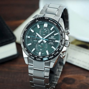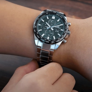 Корпус: Корпус выполнен из нержавеющей стали, безель с IP покрытием чёрного цвета. Циферблат зелёного цвета дополнен серебристыми индексами и стрелками, что придает часам универсальность и элегантность. Необритовое светонакопительное покрытие обеспечивает длительное послесвечение в темноте даже после кратковременного нахождения на свету. Защита заводной головки. Прочное минеральное стекло устойчивое к мелким механическим повреждениям. Диаметр корпуса составляет 42 мм, толщина 11 мм. Водостойкость WR 100.