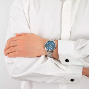 Корпус: Корпус часов выполнен из нержавеющей стали. Циферблат с метками в виде штрихов выполнен по технологии Sunray (солнечные лучи) синего цвета. Необритовое светонакопительное покрытие, нанесенное на стрелки, обеспечивает длительное послесвечение в темноте даже после кратковременного нахождения на свету. Прочное, устойчивое к царапинам минеральное стекло защищает часы от повреждений. Заводная головка с защитой. Задняя крышка с винтовым фиксатором. Габаритные размеры: 42,6х46,5мм, толщина 9мм, вес 113г. Водозащита: 100 WR.