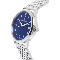 Корпус: Корпус из полированной стали. Синий циферблат украшен 8 бриллиантами. Сапфировое стекло с антибликовым покрытием. Диаметр 30 мм. Водозащита 50 м.
