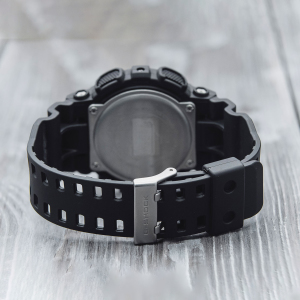 Корпус: Противоударный корпус чёрного цвета из полимерного материала защищает механизм от ударов и вибрации. Часы защищены от магнитных полей. Высококонтрастный электронный черный ЖК-циферблат защищен акриловым стеклом.Циферблат подсвечивается светодиодом, функция автоподсветки освещает циферблат при повороте часов к лицу. Размер 55 мм x 51,2 мм х 16,9 мм. Водозащита 200 метров.