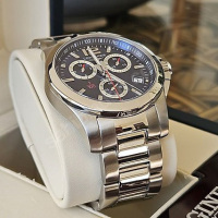 Функции: Центральные часовая, минутная и маленькая секундная стрелки, индикация даты на отметке "4 часа", хронограф с центральной секундной стрелкой с стрелкой 1/100 сек., 30-минутным и 12-часовым индикаторами.