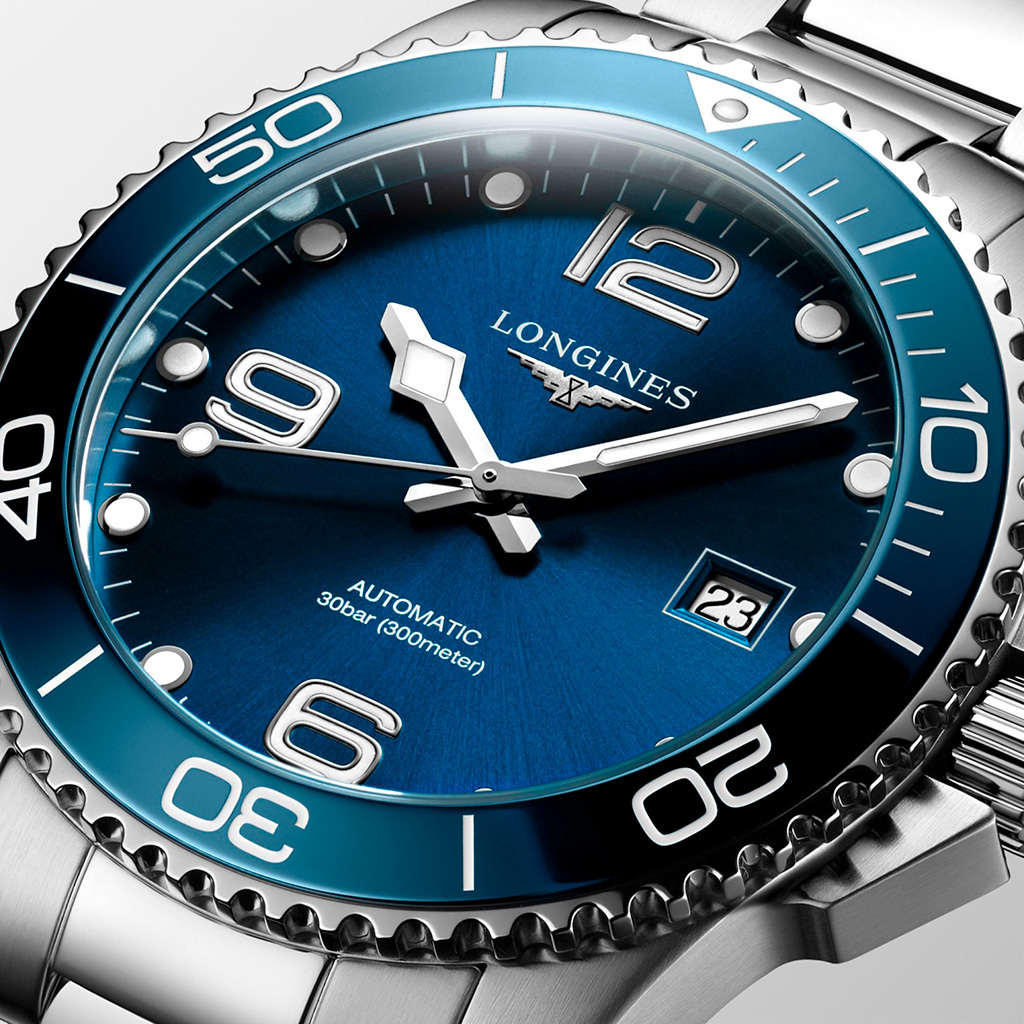 Корпус: Корпус выполнен из высококачественной стали 316L. Однонаправленный безель вращается со щелчками только в направлении против хода стрелок, боковая грань с ребристой насечкой, фронтальная поверхность из керамики синего цвета с контрастной разметкой, на отметке “12 часов” находится капсула со светящимся в темноте фотолюминесцентным элементом. Синий циферблат с узором sunray. Посеребренные полированные стрелки с покрытием Super-LumiNova®. Устойчивое к царапинам сапфировое стекло с многослойным антибликовым покрытием с обеих сторон. Диаметр 41 мм. Водонепроницаемость 300 метров, завинчивающаяся заводная коронка.