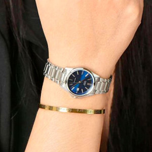 Корпус: Корпус изготовлен из гипоаллергенной латуни. Синий циферблат с метками в виде штрихов. Прочное минеральное стекло обеспечит защиту часов от повреждений. Диаметр: 27 мм. Водонепроницаемость: 30 м.