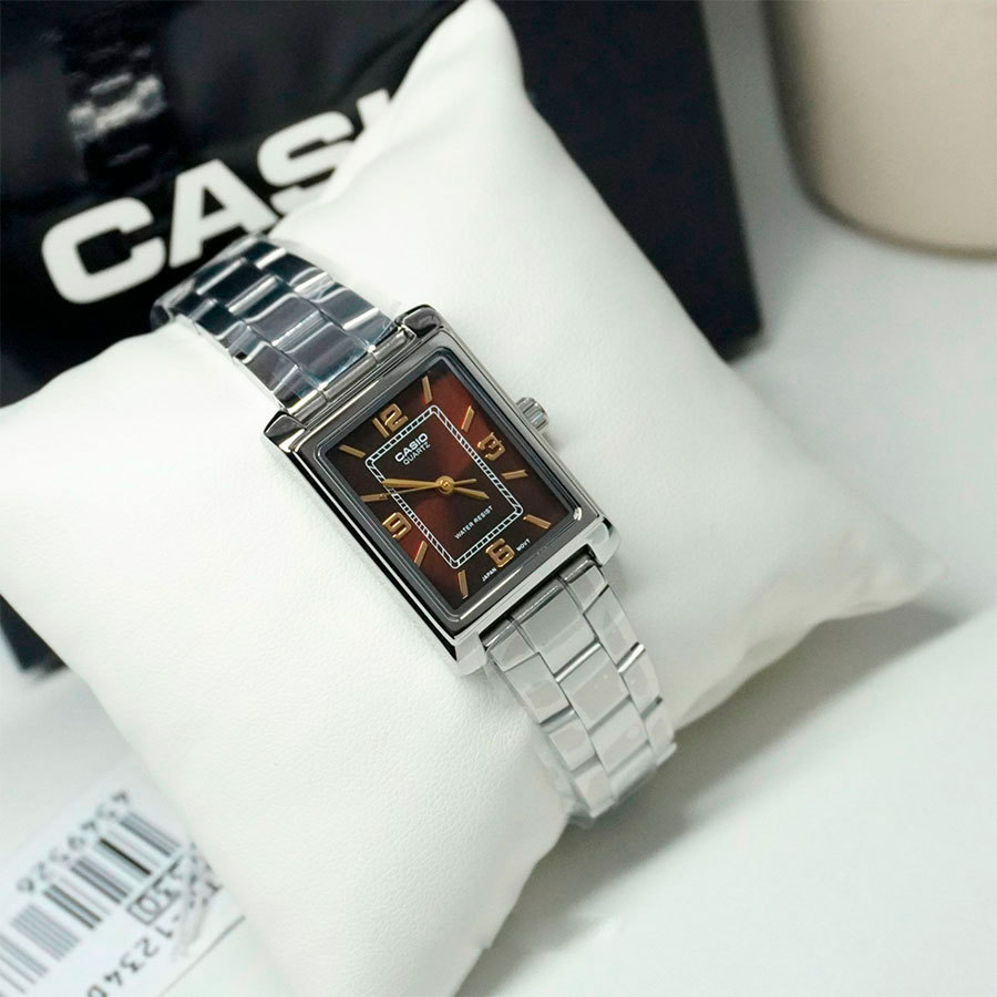 Корпус: Корпус изготовлен из гипоаллергенной латуни. Коричневый циферблат выполнен по технологии Sunray (солнечные лучи). Золотистые метки в виде штрихов и арабских цифр. Прочное минеральное стекло обеспечит защиту часов от повреждений. Размер 29x44x7,4 мм. Водонепроницаемость: 30 м.