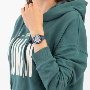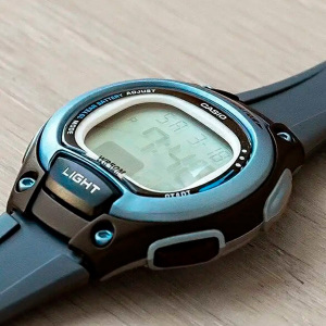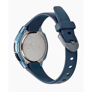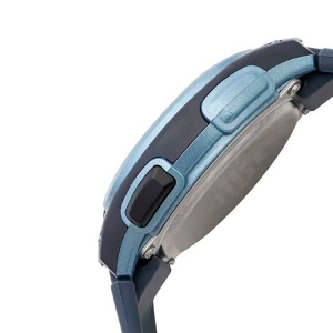 Корпус: Корпус из полимерного материала синего цвета. Циферблат чёрного цвета вокруг дисплея. Дисплей серого цвета, цифры чёрного. Акриловое стекло. Габаритные размеры: 38,1х34,6мм, толщина 11,3мм, вес 20г. Водозащита: 50 м.