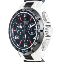 Функции: Центральные часовая, минутная и маленькая секундная стрелки. Индикация “большой даты” в двойной апертуре около отметки «12 часов». Хронограф с центральной секундной стрелкой, счетчики 30 минут и 1/10 секунды. Режимы измерений ADD и SPLIT.