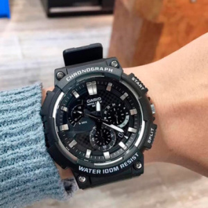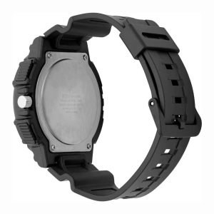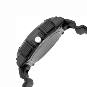 Корпус: Корпус из высококачественной полимерного материала – прочного и долговечного, с малым весом, чёрного цвета. Циферблат с объемной структурой крупными накладными метками. Необритовое светонакопительное покрытие обеспечивает длительное послесвечение в темноте даже после кратковременного нахождения на свету. Выступы корпуса служат защитой для переводной коронки. Задняя крышка из нерж. стали имеет винтовое соединение с корпусом. Габаритные размеры: 55,8 х 53,5 мм, толщина 14,1 мм, вес 63г. Водозащита: 10 ATM.