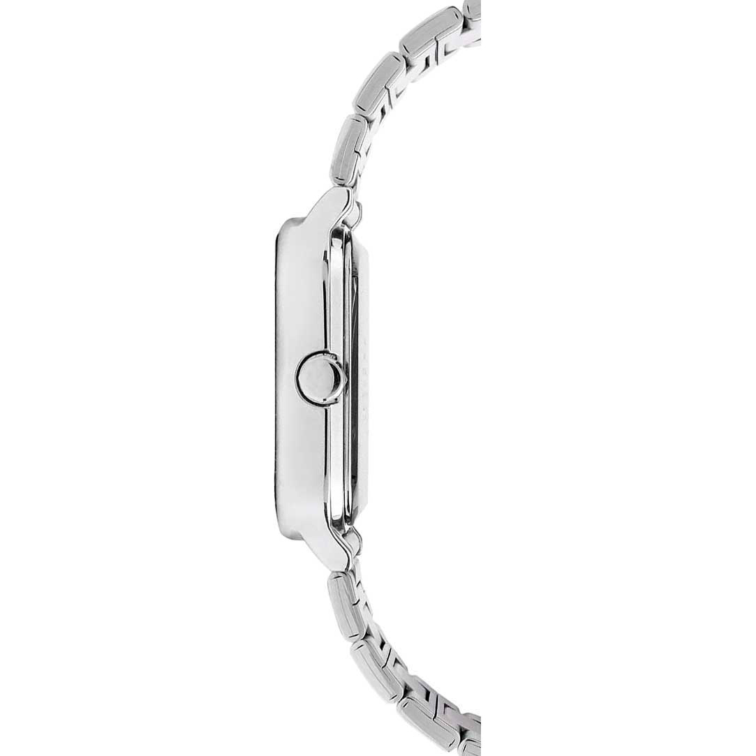 Корпус: Прямоугольный корпус хромированного цвета из нержавеющей стали. Циферблат выполнен по технологии Sunray (солнечные лучи) бежевого цвета. Стрелки, метки в виде штрихов и арабской цифры синего цвета. Минеральное стекло защищает циферблат от повреждений. Габаритные размеры: 34х44,5мм, толщина 9,3мм. Водозащита: 5 ATM.