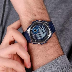 Функции: Электронный ЖК дисплей. Часы, минуты, секунды, pm, месяц, дата, день недели. Хронограф, таймер, мировое время, 12/24-часовое отображение времени, автоматический календарь. Почасовой сигнал времени, 5 многофункциональных будильников (с повтором будильника).