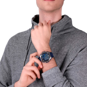 Корпус: Корпус комбинированный из полимерного материала синего цвета и нержавеющей стали. Органическое стекло из полимерного материала (акрил). Светодиодная LED-подсветка. Габаритные размеры: 51,8 мм x 50,7 мм x 13,7 мм, вес 55 грамм. Водозащита: 10 АТМ (100 метров).