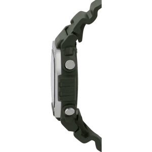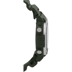 Корпус: Корпус выполнен из полимерного материала зелёного цвета/сталь. Серый циферблат. Акриловое стекло. Габаритные размеры: 47,2x50,8мм, толщина 12,3мм, вес 50г. Водозащита: 100м.