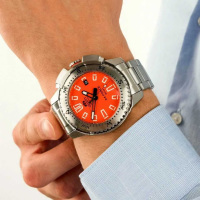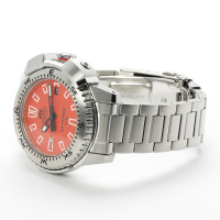 Корпус: Корпус из нержавеющей стали. Уникальный циферблат защищен сапфировым стеклом, обеспечивающим превосходную устойчивость к царапинам. Характерные формы индексов вдохновлены протекторами внедорожных шин, блоками и трафаретами. Кончики стрелок и вдавленные указатели имеют высокоинтенсивный световой индикатор, который заряжает светом, обеспечивая отличную видимость в темное время суток. Механизм не только выглядит прочно, но и устойчив к ударам. Размер корпуса: 45,0 мм, водонепроницаемость 200 м
