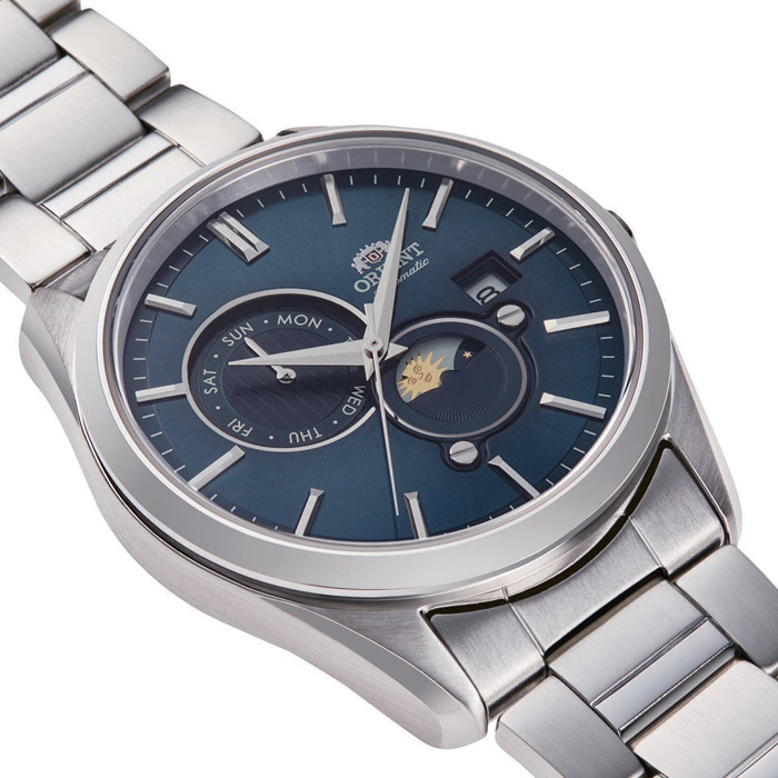 Корпус: Синий циферблат с часовыми индексами в виде штрихов. Корпус выполнен из нержавеющей стали. Диаметр корпуса 41,5 мм. Водозащита 50м. Устойчивое к возникновению царапин сапфировое стекло.