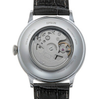 Корпус: Нержавеющая матовая сталь. Тёмный циферблат с часовыми индексами в виде штрихов и цифр. Минеральное стекло. Завинчивающаяся прозрачная задняя крышка. Диаметр 41 мм. Водонепроницаемисть 30 м.