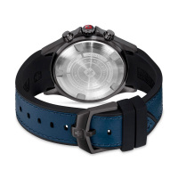 Корпус: Корпус модели выполнен из высококачественной стали с повышенной устойчивостью к коррозии, с частичным PVD покрытием. Синий безель. Стальные стрелки и часовые индексы в виде штрихов с люминесцентным покрытием Super-LumiNova для оптимальной разборчивости в условиях низкой освещенности. Сапфировое стекло устойчивое к появлению царапин, обладающее высокой прозрачностью. Рифленая заводная головка с защитой. Диаметр: 43 мм. Водонепроницаемость: 100 м.