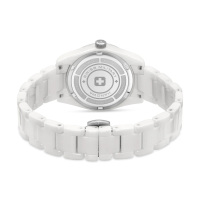 Корпус: Круглый корпус из керамики белого цвета. Белый перламутровый циферблат, украшен тремя искусственными бриллиантами. Стрелки с люминесцентным покрытием, которое светится в темноте после непродолжительной зарядки на свету. Сапфировое стекло устойчивое к появлению царапин, обладающее высокой прозрачностью. Диаметр: 31,5 мм. Водонепроницаемость: 50 м.