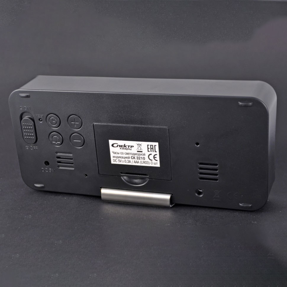 Механизм: Часы настольные с цифровой индикацией с будильником и измерением температуры. Яркость свечения часов можно менять (три уровня яркости) или полностью отключить индикацию. В режиме выключенной индикации нажатие любой кнопки кратковременно включит индикацию. Также у часов есть ночной режим работы индикации, который позволяет автоматически снизить яркость свечения в тёмное время суток. При включённом ночном режиме, в настроенный промежуток времени яркость индикации дисплея автоматически будет установлена на минимальный уровень. Часы могут работать в трёх режимах: отображение текущего времени, отображение температуры окружающего воздуха и режим попеременного отображения времени и температуры. Две центральные точки на дисплее часов не мигают. Часы могут работать, в том числе, только от батареек, т.е. без подключения к внешнему источнику питания. Когда часы работают только от батареек, дисплей всё время выключен, при этом нажатие любой кнопки или кратковременное нажатие на корпус часов сверху включит индикацию примерно на 10 секунд. У часов есть один будильник. Температура может показываться в градусах Цельсия или в градусах Фаренгейта. Питание осуществляется от порта USB. В комплекте с часами идёт USB шнур (1,5 метра) для питания часов от USB источника (5V). Для питания можно использовать, например, любой адаптер, предназначенный для зарядки мобильных телефонов, и имеющий USB выход. Блока питания от сети 220V в комплекте нет.