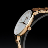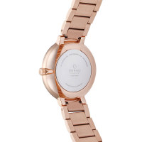 Корпус: Корпус выполнен из стали с розовым IPRG покрытием. Минеральное стекло. Перламутровый циферблат украшен кристаллами Swarovski. Диаметр 34 мм. Водонепроницаемость 30 метров.