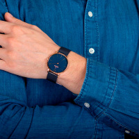 Корпус: Корпус выполнен из нержавеющей стали с IP покрытием. Синий циферблат с золотистыми метками и стрелками. Прочное минеральное стекло устойчивое к мелким механическим повреждениям. Водозащита: 30 м. Диаметр: 40 мм.