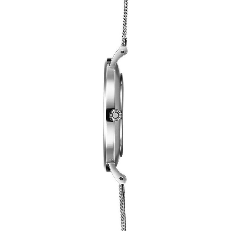 Корпус: Нержавеющая сталь. Серебристый циферблат. Минеральное стекло повышенной прочности. Водозащита: 30 м. Диаметр: 32 мм.