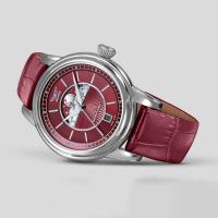 Ремешок: Бордовый ремешок из телячьей кожи с тиснением под аллигатора, классическая застежка – пряжка из нержавеющей стали.