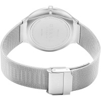 Ремешок: Стильный браслет из нержавеющей стали, выполненный в технике миланского плетения, подчеркивает утонченность дизайна и обеспечивает надежную фиксацию на руке благодаря удобной раскладной застежке. Застежка с системой блокировки.