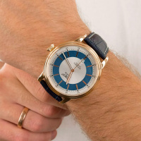 Ремешок: Синий ремешок из телячьей кожи с тиснением под аллигатора. Ремешок снабжен удобной раскладной застежкой, которая закрывается одним щелчком.