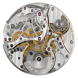 Внутри корпуса установлен автоматический механизм калибра «Hysek HW4058», разработанный и собранный мануфактурой марки. Он стал результатом большой и кропотливой работы инженеров, которые значительно улучшили его функциональность. Механизм на 49 камнях состоит из 412 компонентов. Он оснащён классическим колонным колесом, рычагами и спиралями фацетированными вручную. Калибр интересен своим автоматическим подзаводом, который осуществляется не посредством классического инерционного груза, а с помощью двойного микроротора (из золота 22K с отделкой «Côte de Genève»), интегрированного в сам механизм, видимый как со стороны задней крышки, так и со стороны циферблата. Балансовая частота механизма составляет 28800 полуколебаний в час, запас хода механизма – 48 ±2 часа. Механизм обеспечивает функции часов, минут, секунд, даты и хронографа.