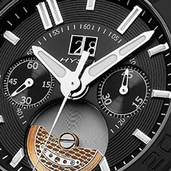 Новинка «Abyss 47mm Chronograph & Grande Date» выделяется своей массивностью и выразительной формой, её водонепроницаемость составляет 3 атм. (30 м.). Модель предлагается на каучуковом ремешке чёрного цвета с фирменной раскладывающейся застёжкой «Hysek».