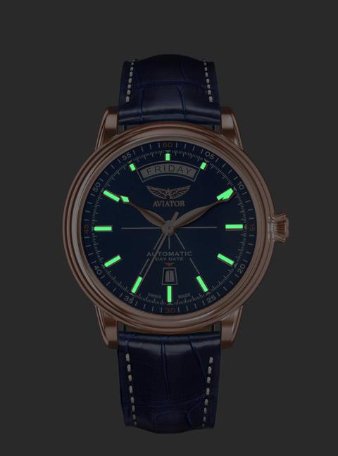 AVIATOR Douglas Day Date отличается отделкой «Солнечные лучи», элегантно изогнутым окошком, указывающим день, и окошком календаря в форме трапеции. Видимость и читабельность являются ключевыми атрибутами коллекции Douglas Day Date. Они объединяет дизайн и функциональность в стиле ар–деко: от полированных металлических индексов до декоративных тонких акцентов на стрелках. Эти часы, несомненно, неподвластны времени своей утонченностью.