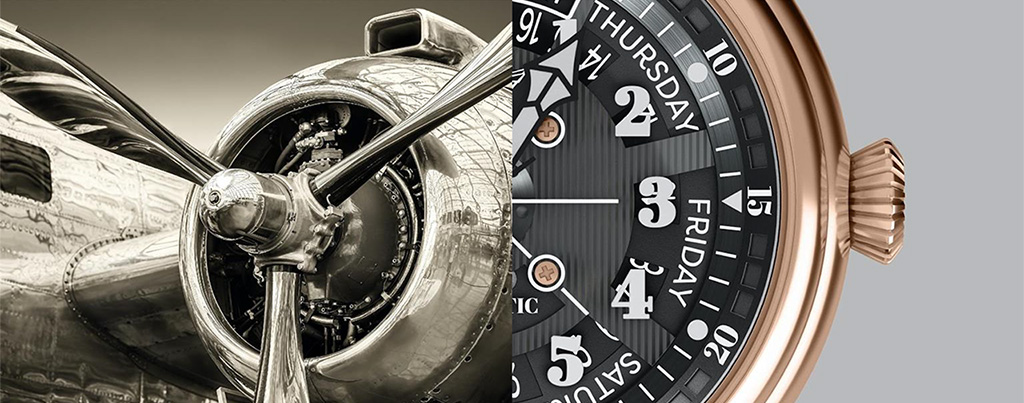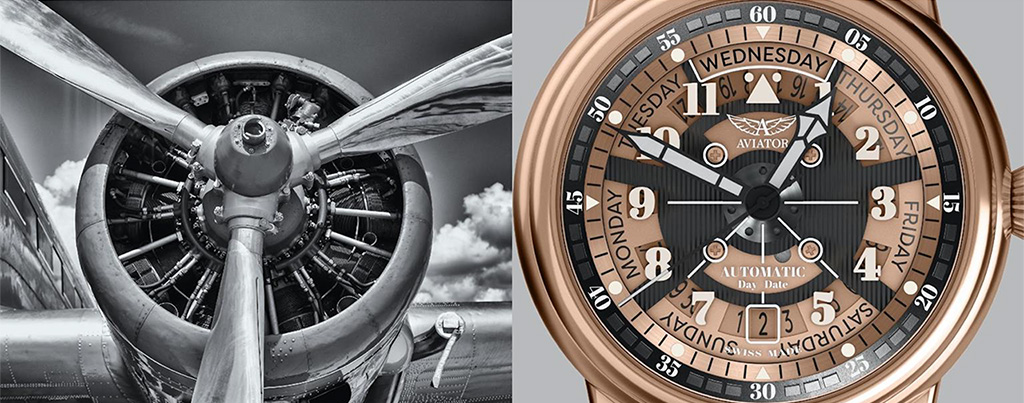 Бренд Aviator представляет часы, которые поддерживают образ самолета Douglas DC-3. Часы повторяют авиадетали этой модели самолета, демонстрируя гармоничные пропорции.