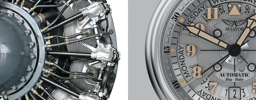 Циферблат повторяет радиальные линии двигателя самолета, которые мы перенесли в мир часового искусства.