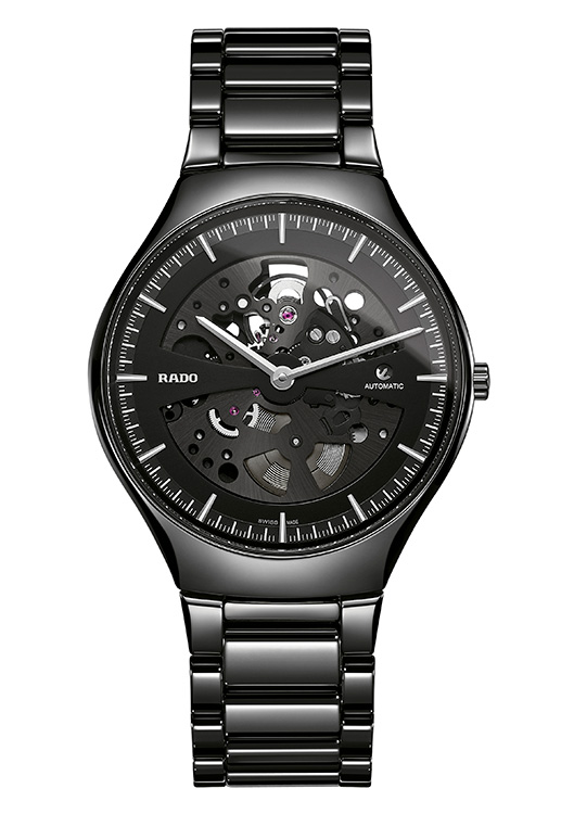 Rado решили показать механизм кварцевых часов и презентовали скелетон True Thinline Skeleton. Это своего рода ода одновременно и наследию бренда, и авангардному духу компании. Часы имеют индивидуальный номер (всего в серии 99 экземпляров) и отличаются изящным силуэтом, при этом они чрезвычайно тонкие - всего 7 мм. Пульсирующий механизм видно через сапфировое стекло на лицевой и обратной стороне.