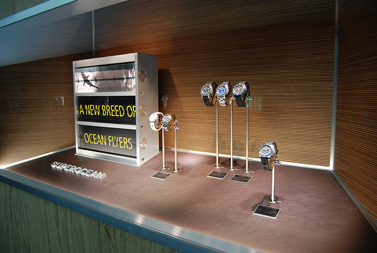 Компания Breitling в этом году вновь выделила свой стенд огромным аквариумом, на этот раз его заселили медузами. И опять компания отличилась революционными разработками, среди них - часы Avenger Hurricane («Ураган») с выдающимся диаметром 50 мм из ультрапрочного и ультралегкого полимера, названного Breitlight. Он в 3,3 раза легче титана и в 5,8 раз легче стали, но значительно прочнее.